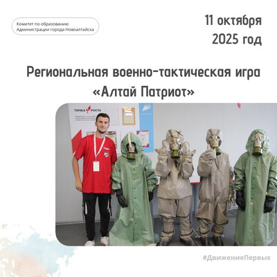 11 октября 2025 года, в рамках реализации гранта «Движения Первых», МБОУ «СОШ № 15» города Новоалтайска проводит Региональную военно-тактическую игру «Алтай Патриот»,посвященную Году защитника Отечества.