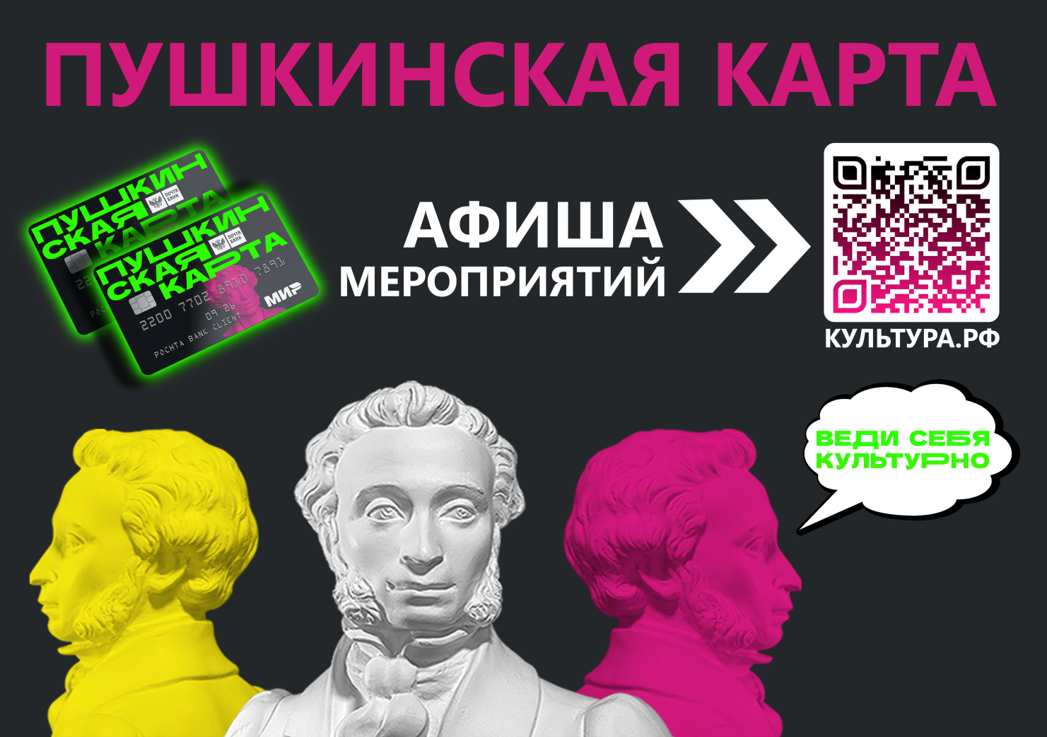 Октябрь продолжается, а значит у вас есть уникальная возможность посетить лучшие культурные мероприятия города благодаря Пушкинской карте. Откройте для себя новые спектакли, выставки, концерты. Планируйте свой месяц с культурой и вдохновением! Подробнее по ссылке: https://disk.yandex.ru/i/FOVNyw4zhmiYxQ | |