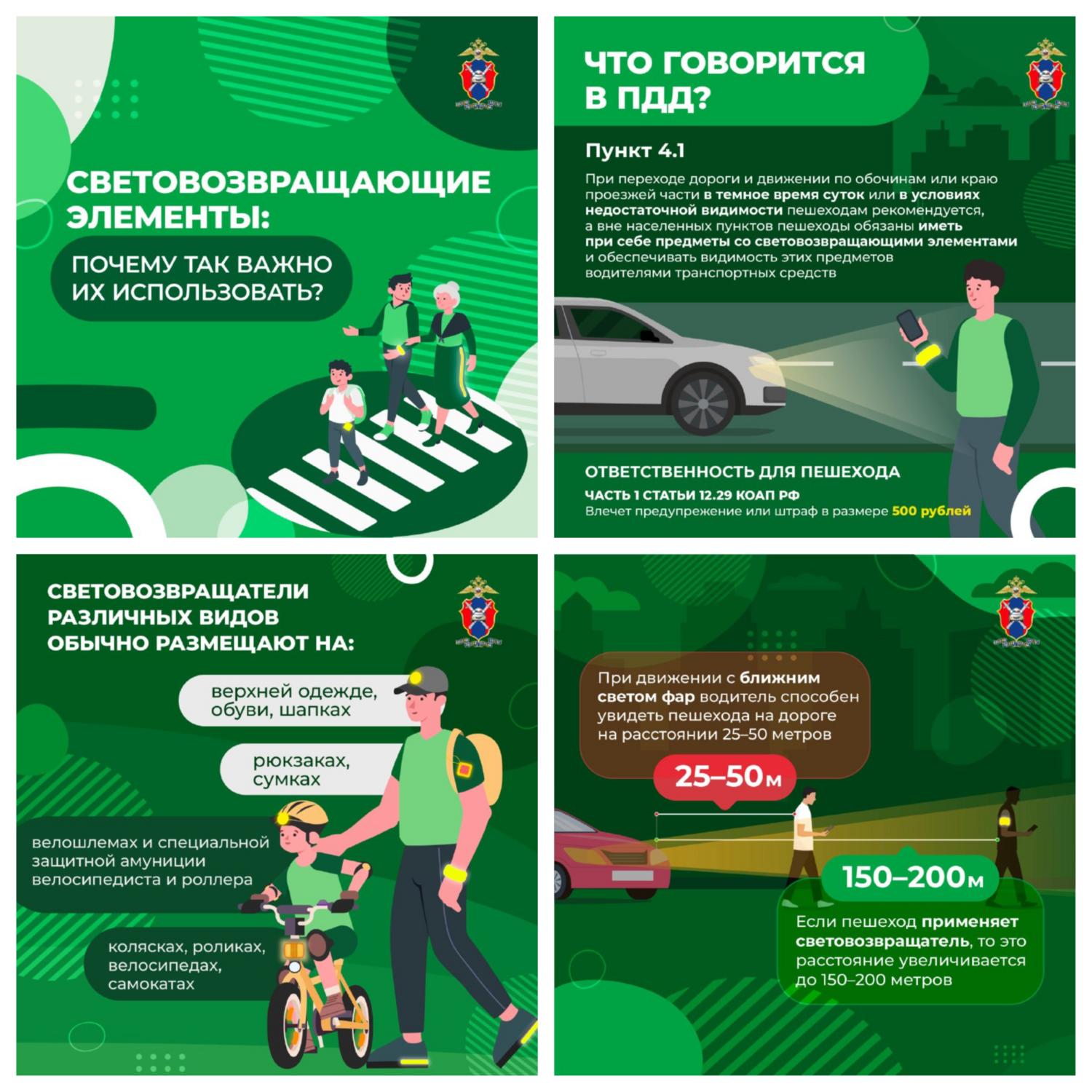 Осенью световой день становится все короче, а туманы и дожди – все чаще. Это самое время, чтобы позаботиться о своей безопасности, сделав себя более заметным на дорогах ️ Данная серия карточек посвящена очень своевременной теме: «Световозвращающие элементы. Почему так важно их использовать?». Рассказываем: